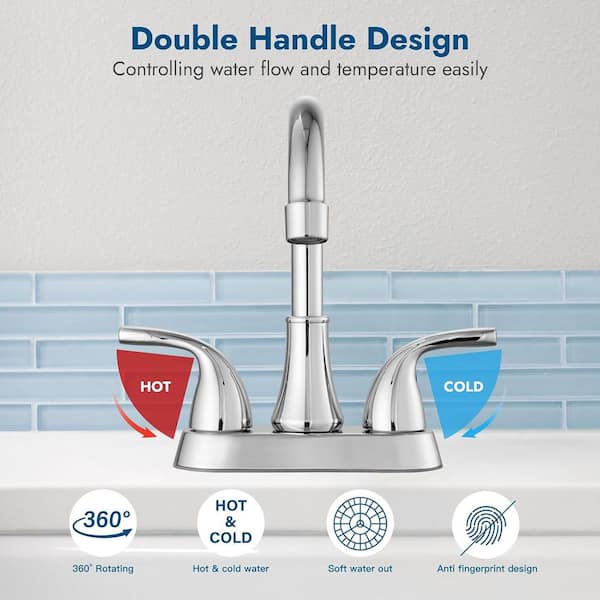 4 in. Centerset Double Handle High Arc Bathroom Faucet with Drain Kit Included in Polished Chrome