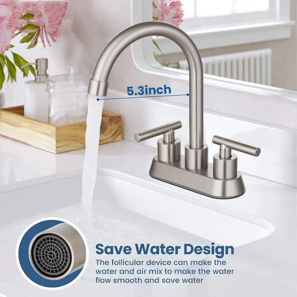 4 in. Centerset Double Handle High Arc Bathroom Sink Faucet with Pop-up Drain in Brushed Nickel