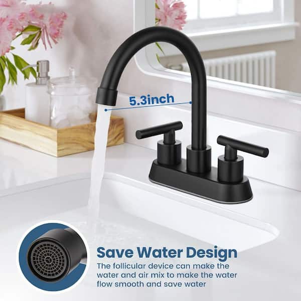 4 in. Centerset Double Handle High Arc Bathroom Sink Faucet with Pop-up Drain in Matte Black