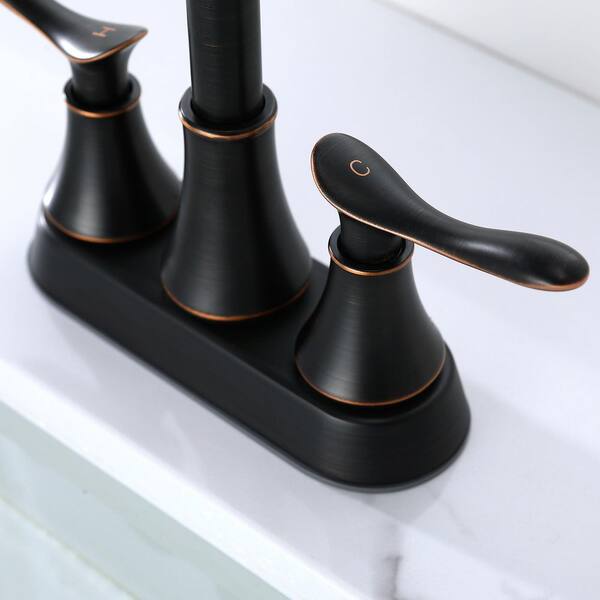 4 in. Centerset Double Handle Mid Arc Bathroom Faucet with Drain Kit Included in Oil Rubbed Bronze