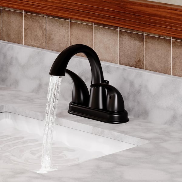 4 in. Centerset Double Lever Handle High Arc Bathroom Faucet with Pop-up Drain in Matte Black