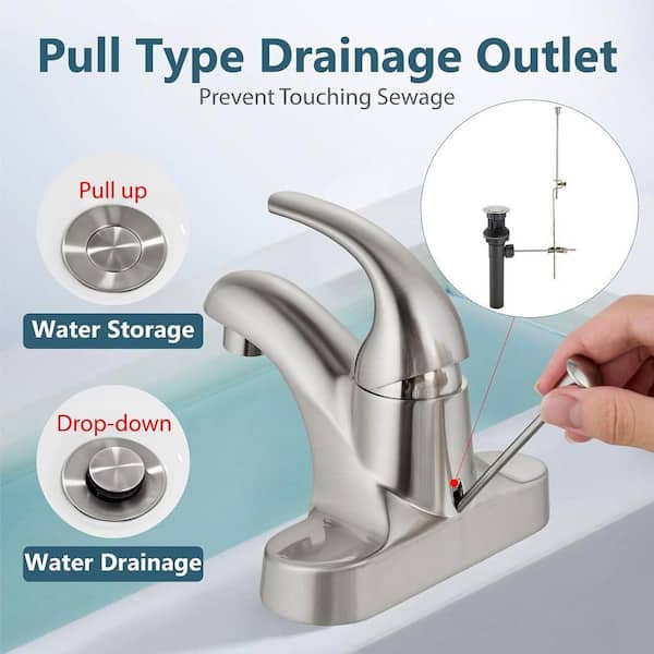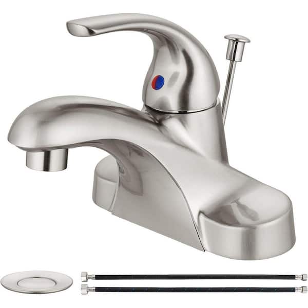 4 in. Centerset Single Handle Mid Arc Bathroom Faucet with Drain Kit Included in Brushed Nickel