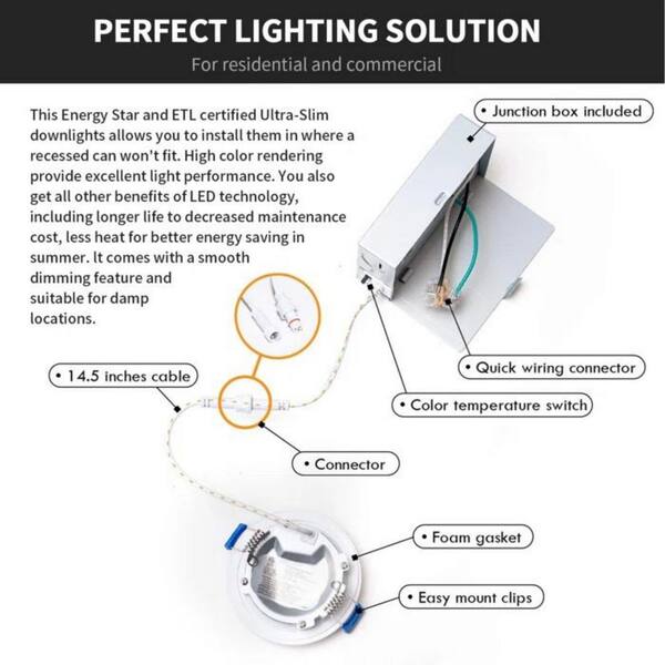 4 in. Selectable Color Temperature LED Canless Recessed Lighting Kit (6-Pack)