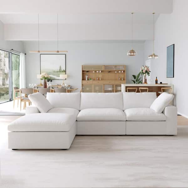 4-pieces Modular 120.5 in. Deep Seat Linen Sectional Sofa with Storage and Removable Covers, Cushions in White 4-Seater