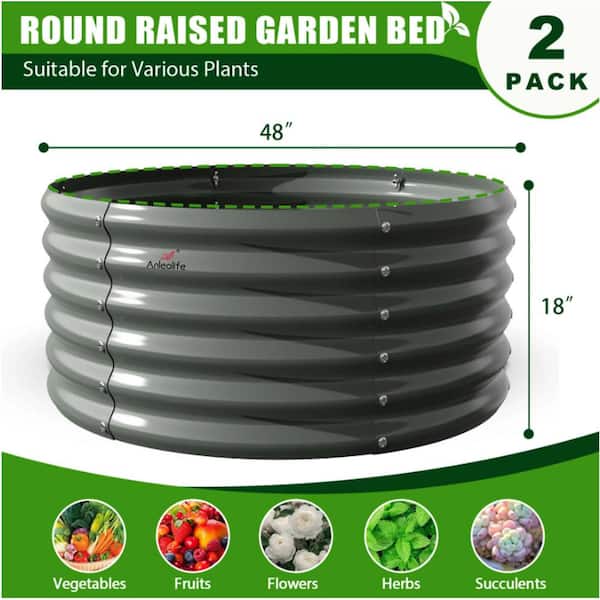 4 x 1.5 ft. Round Metal Galvanized Raised Garden Bed, Outdoor Planter Boxes for Vegetables Flowers Herbs, 2 Pack, Gray