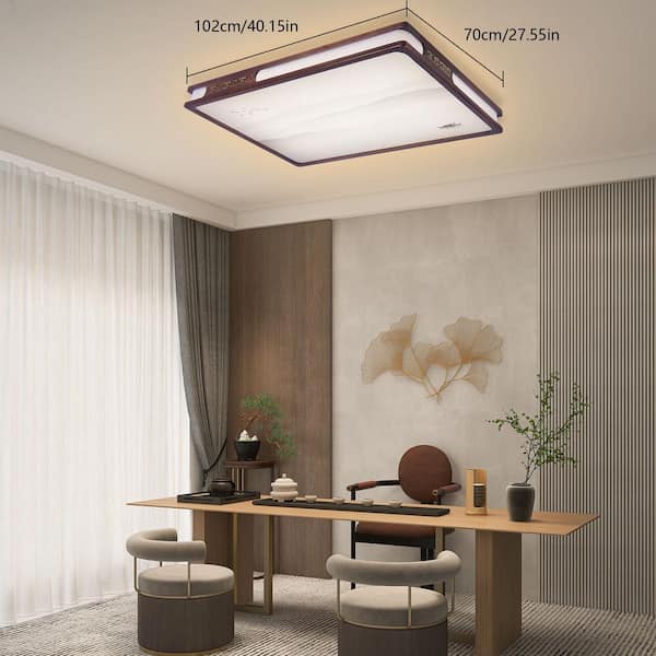 40.15 in. Brown Modern Square Flush Mount Dimmable LED Ceiling Light for Living Room Dining Room Bedroom, with Remote
