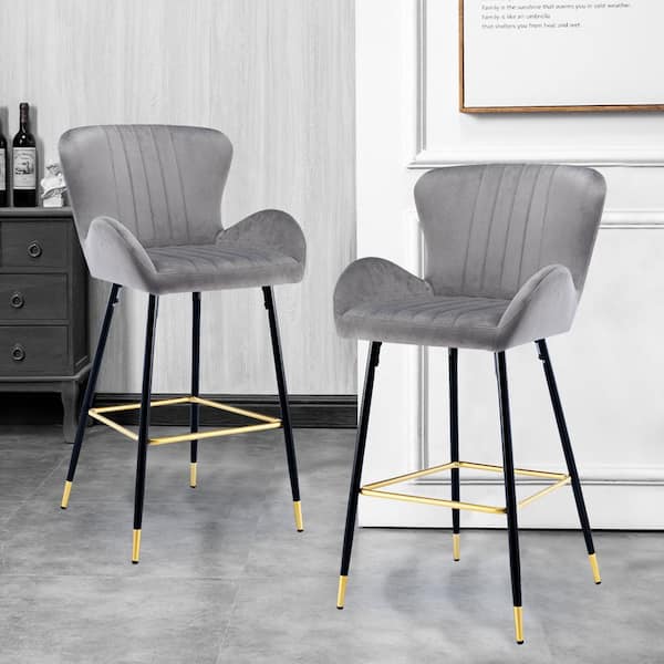 40.94 in. Gray Bar Stool with Back and Footrest