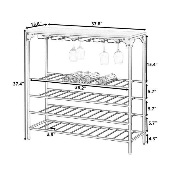40-Bottles Kitchen Dining Room Metal Floor Free Standing Wine Rack Table, 5-Tier Organizer Shelves Black
