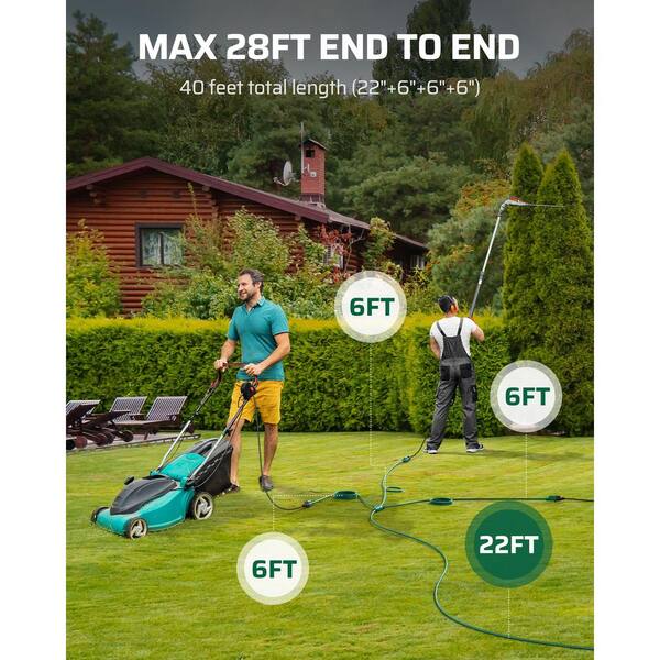 • Max 28ft End to End (40 FT Total) Outdoor Extension Cord