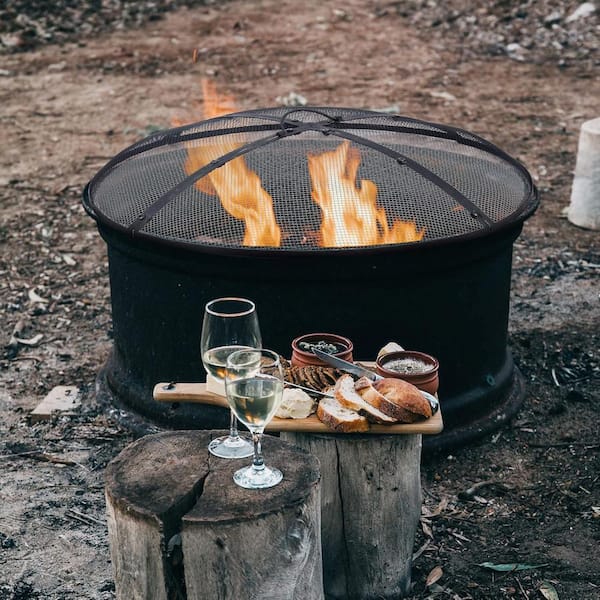 40 in. Black Fire Pit Spark Screen Cover with Ring Handle for Patio Backyard