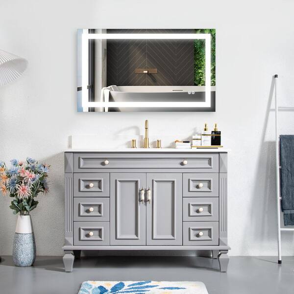 40 in. W x 24 in. H Large Reactangular Frameless with Night Light Surface Mount Bathroom Vanity Mirror in White