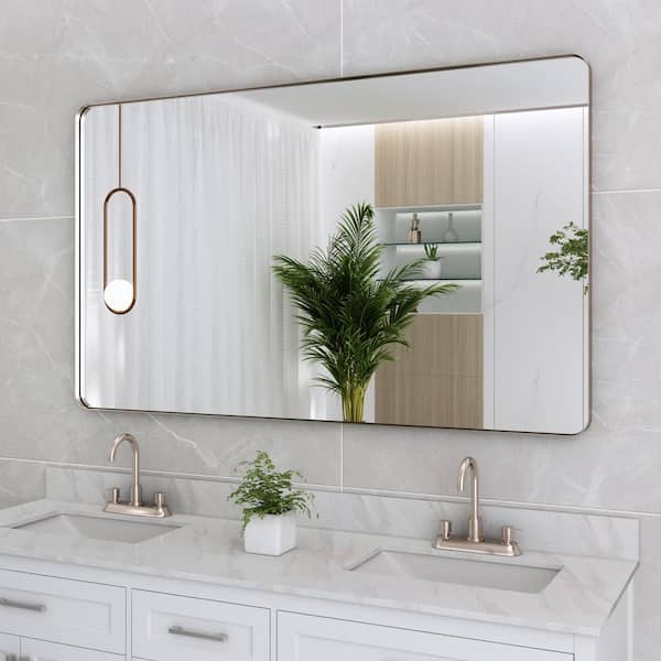 40 in. W x 24 in. H Large Rectangular Framed Wall Mounted Bathroom Vanity Mirror in Brushed Nickel