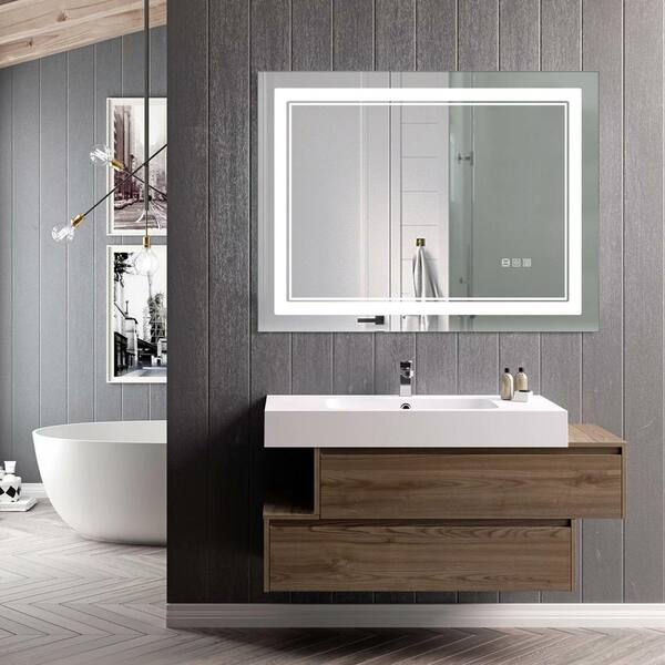 40 in. W x 24 in. H Large Rectangular Frameless Wall Bathroom Vanity Mirror in Silver