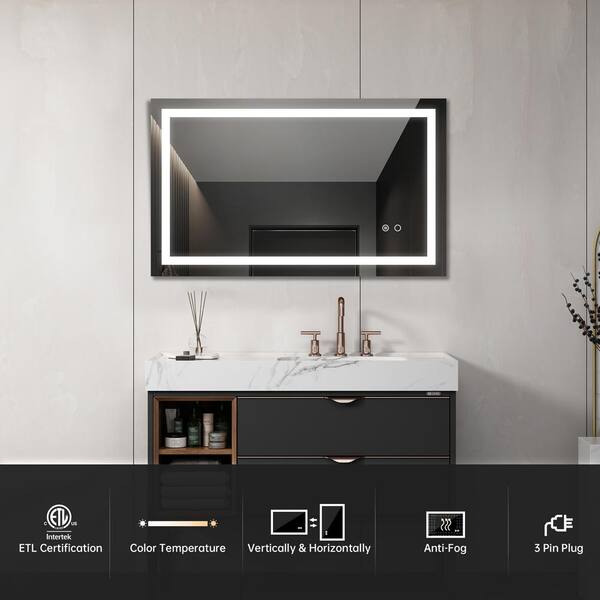 40 in. W x 24 in. H Rectangular Frameless Anti-Fog Adjustable Light Wall Mount Bathroom Vanity Mirror in Backlit Light
