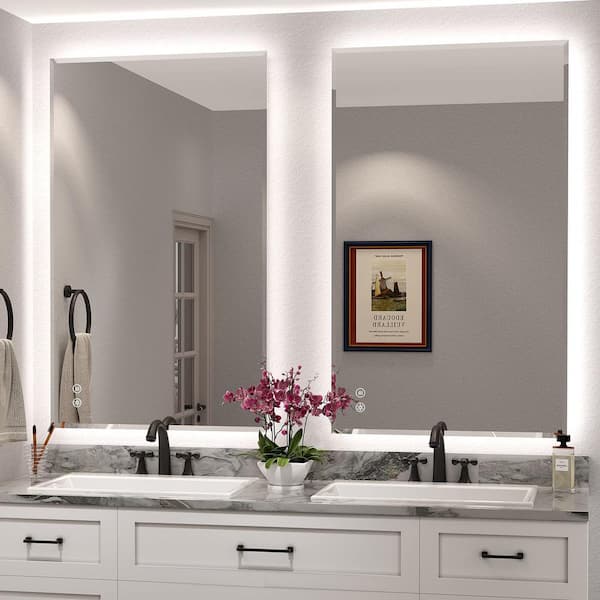 40 in. W x 24 in. H Rectangular Frameless LED Backlit Wall Mounted Anti-Fog Bathroom Vanity Mirror with Touch Switch
