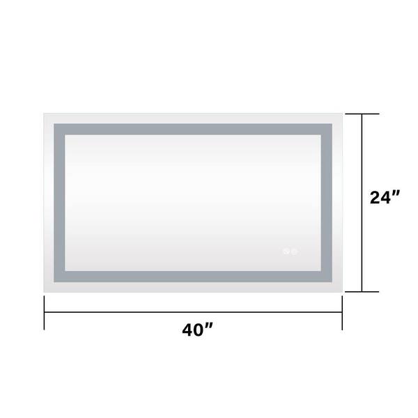 40 in. W x 24 in. H Rectangular Frameless LED Wall Mount Anti-Fog Dimmable Modern Decorative Bathroom Vanity Mirror