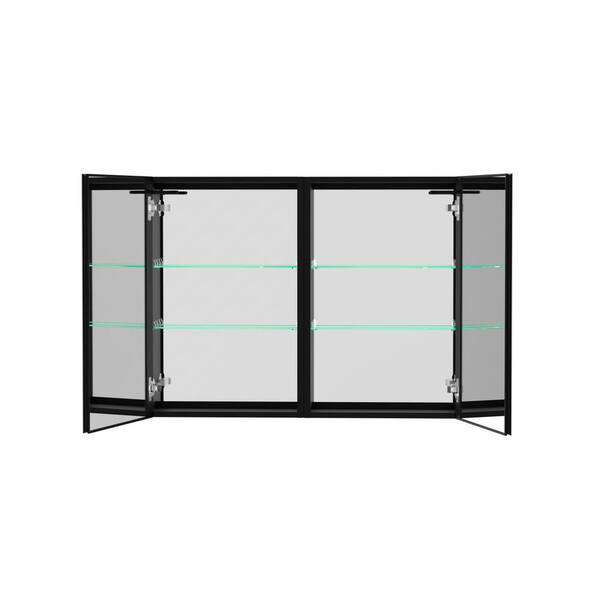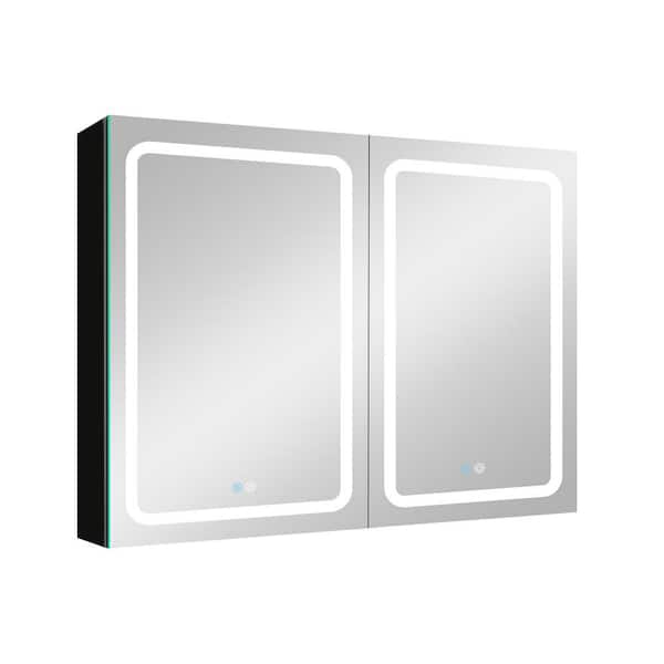 40 in. W x 30 in. H LED Double Door Rectangular Black Aluminium Defogging Surface Mount Medicine Cabinet with Mirror