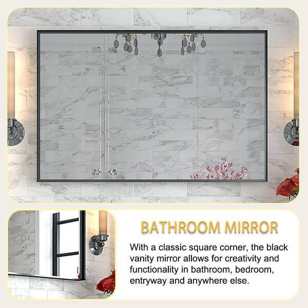 40 in. W x 30 in. H Rectangular Aluminium Framed Wall Bathroom Vanity Mirror in Black