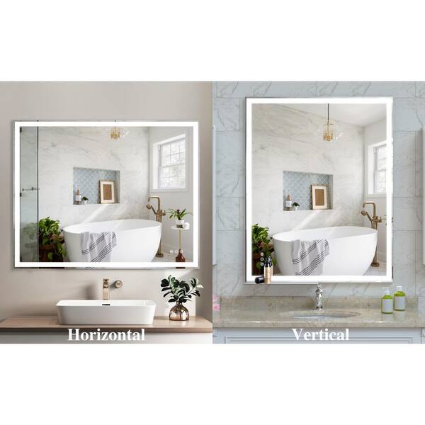 40 in. W x 32 in. H LED Rectangle Aluminium Frameless Silver Mirror with Memory for Living Room