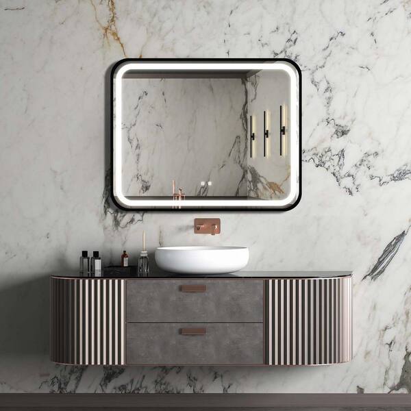 40 in. W x 32 in. H LED Rectangular Metal Framed Wall Mount Bathroom Vanity Mirror with Defogging Memory Function
