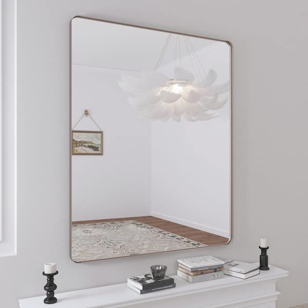 40 in. W x 32 in. H Large Rectangular Framed Wall Mounted Bathroom Vanity Mirror in Brushed Nickel