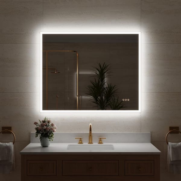 40 in. W x 32 in. H Rectangular Framed LED Wall Bathroom Vanity Mirror, Front and Backlit, Dimmable, Defogger, Easy Hang