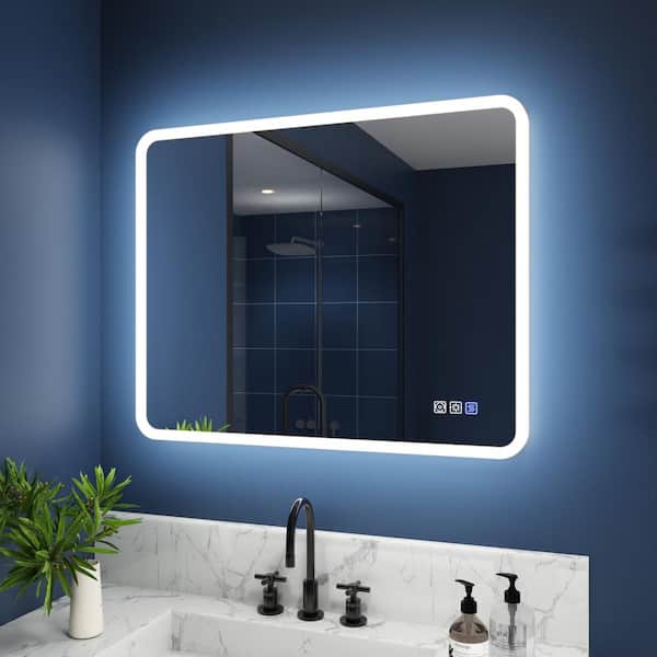 40 in. W x 32 in. H Rectangular Framed Wall LED Bathroom Vanity Mirror with Dimmable LED Bathroom Mirror in White