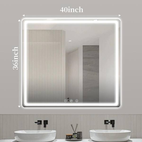 40 in. W x 36 in. H Rectangular Frameless Wall Bathroom Vanity Mirror with LED Lights, Front and Backlight
