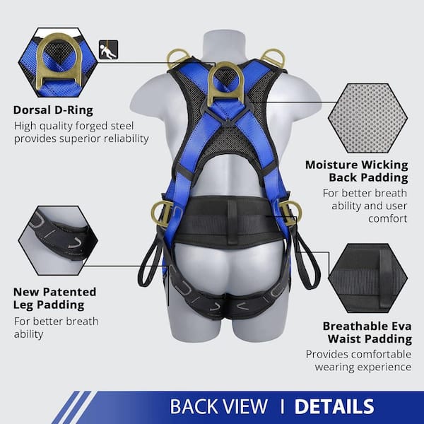 400 lb. Capacity Safety Harness Fall Protection with 4 Quick Buckles and 6 Adjustment D-rings for Construction