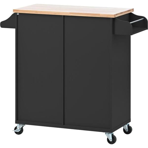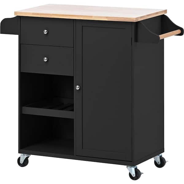 41.30 in. W x 15.70 in. D Black Wood Kitchen Cart with Wheels; Drawers; Shelf; Spice Rack; Locking Casters