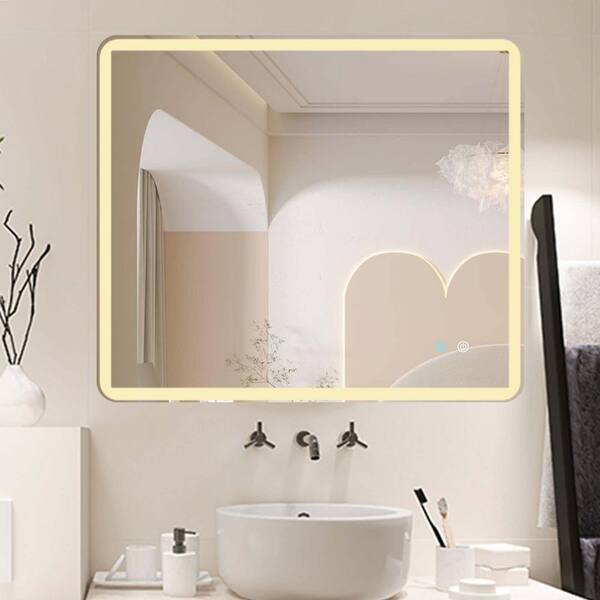 41.4 in. W x 35.5 in. H Rectangular Frameless Anti-Fog LED Dimmable Wall Bathroom Vanity Mirror in Natural Silver