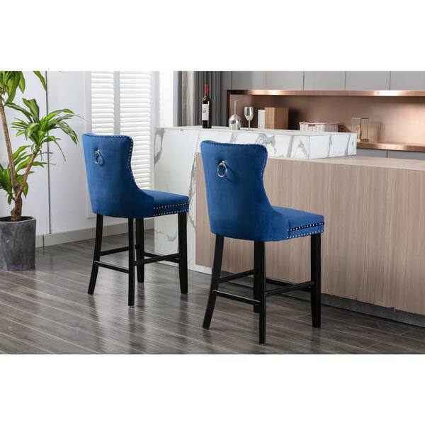 41.5 in. Blue High Back Wood with Button Tufted Decoration Bar Stool with Velvet Seat (Set of 2)
