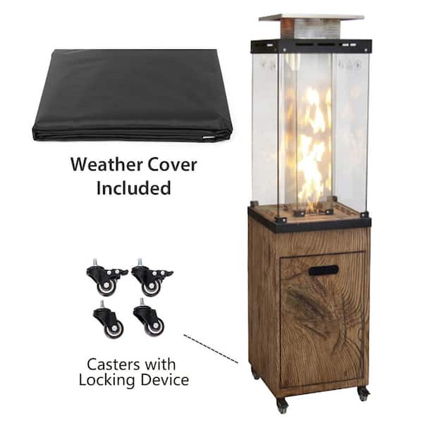 41000 BTU Brown Glass Top and TerraFab Base Propane Patio Heater with Wheels