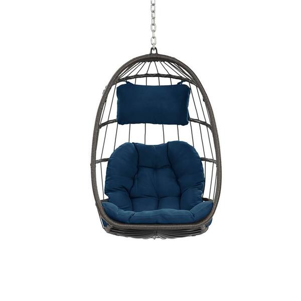 42.5 in. L Outdoor Wicker Swing Chair Hammock Chair Hanging Chair with Aluminum Frame Dark Blue Cushions