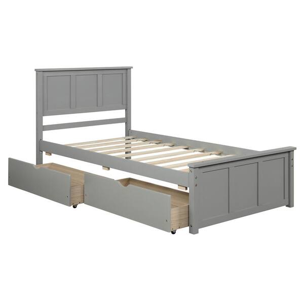 42.7 in. W Gray Wood Frame Twin Size Platform Bed, Twin Bed Frames with Storage Drawers and Headboard for Boys and Girls