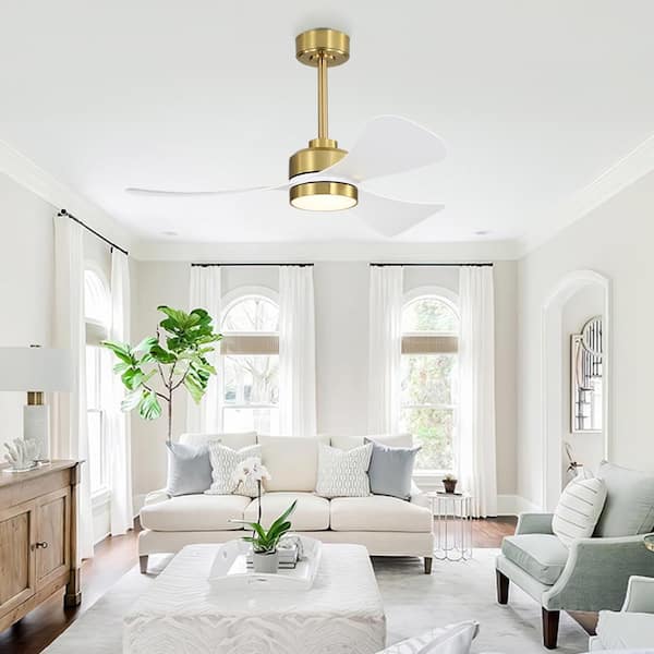 42 in. Dimmable Smart LED Indoor White and Gold 3-Blades Ceiling Fan with Remote Control and Downrod