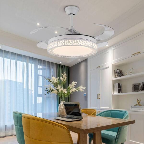 42 in. Modern Indoor Integrated LED 3 Colors Change Retractable Blade Ceiling Fan with Light for Living Room