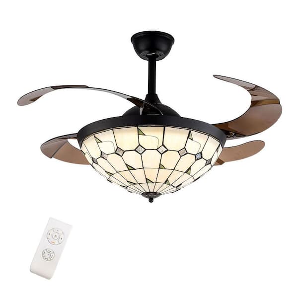 42 in. Vintage Indoor Retractable Blades Glass Lampshade Integrated LED Ceiling Fan with Remote Control