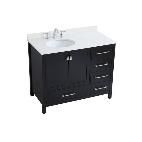 42 in. W Single Bath Vanity in Black with Engineered Stone Vanity Top in Calacatta with White Basin with Backsplash