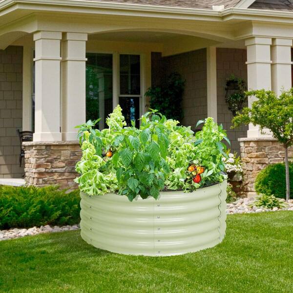 42 in. W x 17 in. H Green Round Galvanized Metal Raised Garden Bed Ground Modular Planter Box