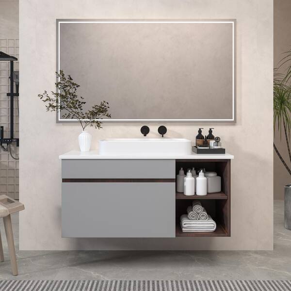 42 in. W x 18 in. D x 19 in. H Bath Vanity in Rock Grey, with White Engineered Stone Top and Single Ceramic Sink