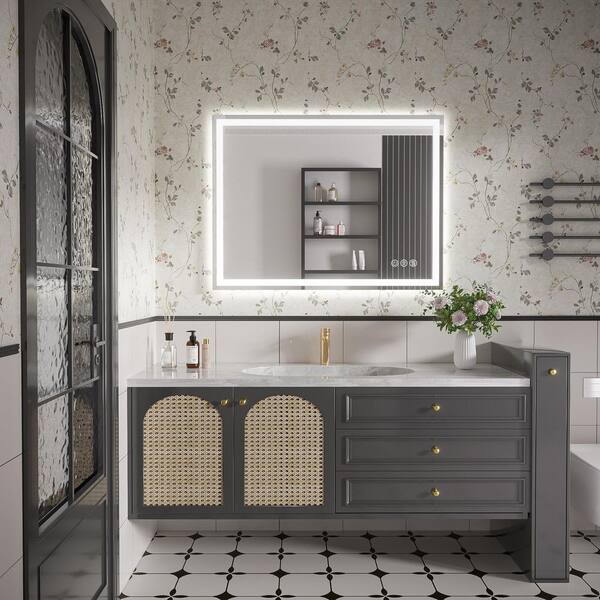 42 in. W x 30 in. H Rectangular Frameless LED Wall Bathroom Vanity Mirror, Tempered Glass