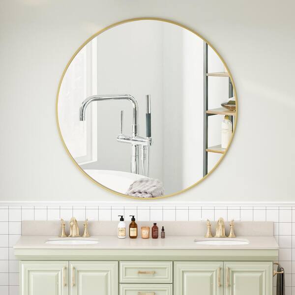 42 in. W x 42 in. H Round Metal Gold Wall Mounted Mirror