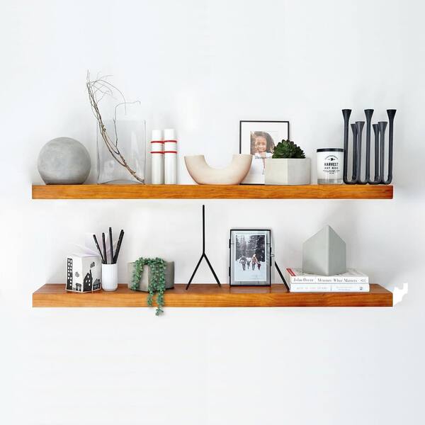 42 in. W x 6.5 in. D Orange Wood Floating Shelves for Wall Decor 2 Decorative Wall Shelf