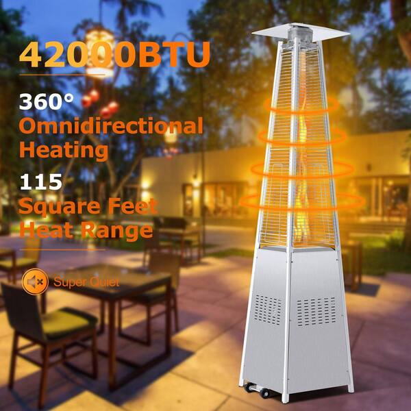 42000 BTU Stainless Steel Material Pyramid Glass Tube Flame Outdoor Heater with Aluminum Top Reflector