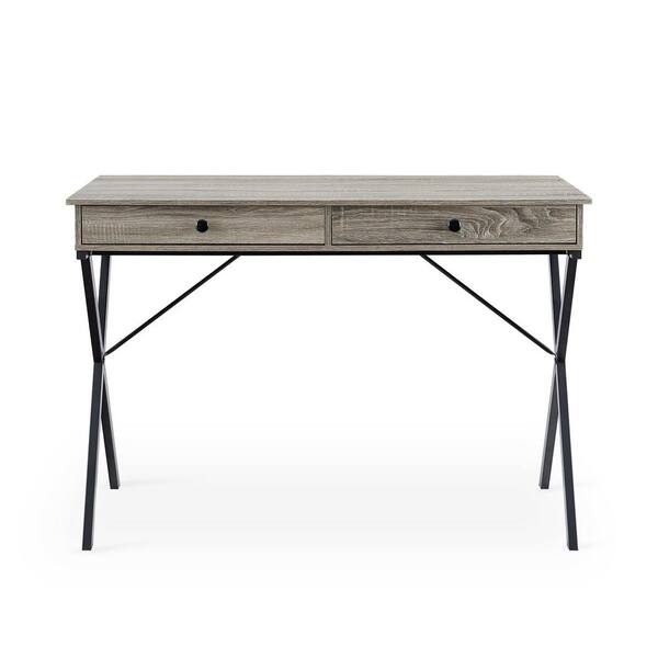 43.2 in. Rectangular Gray Wash MDF 2-Drawer Writing Desk