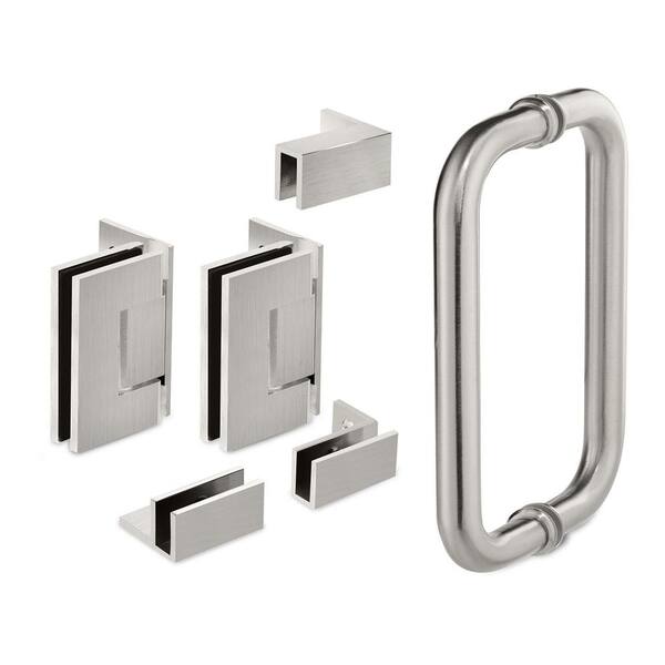 43.25 in. x 76 in. Frameless Hinged Reversible Shower Door and Panel in Brushed Nickel