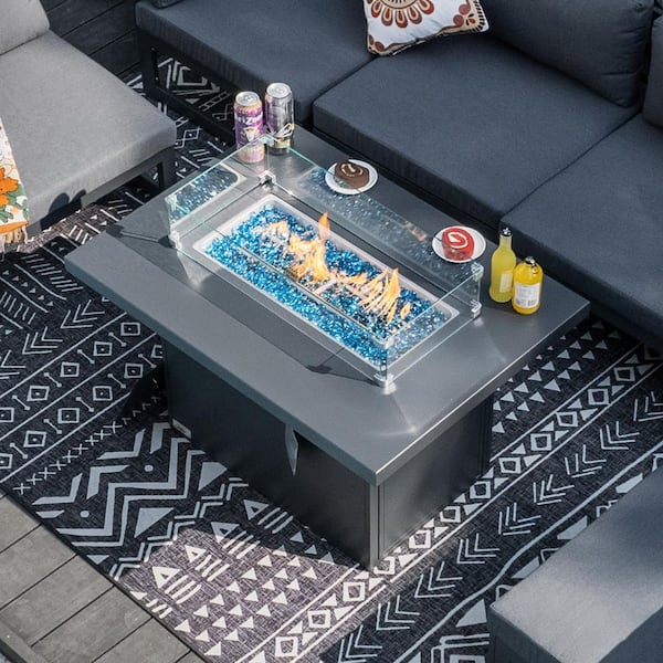 43 in. 60000 BTU Outdoor Gray Rectangular Aluminum Propane Gas Fire Pit Table with Glass Wind Guard and Cover