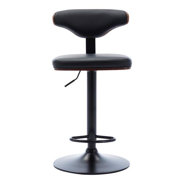 43 in. Black Adjustable Low Back Bar Stools Walnut with Upholstered Seat (Set of 8)