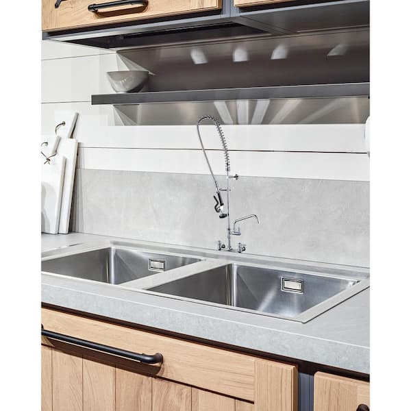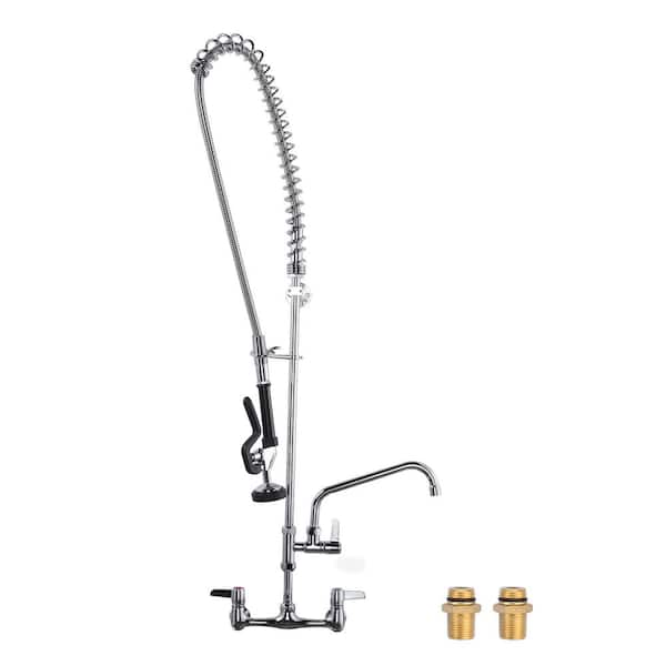 43 in. Commercial Triple Handles Pull Down Sprayer Kitchen Faucet with Pre-Rinse Sprayer in Chrome